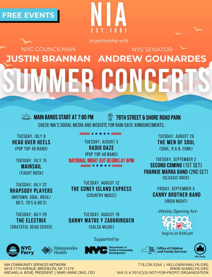 Join us for our annual Summer Concert Series in partnership with Councilman Justin Brannan and Senator Andrew Gounardes!
